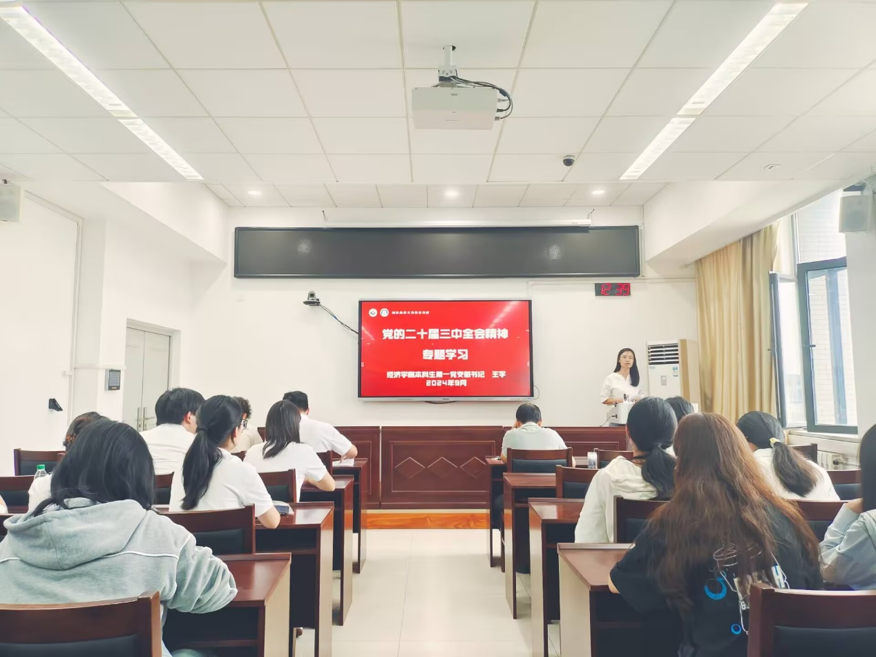 王学指出,学习好贯彻好党的二十届三中全会精神,是当前和今后一个时期全党全国的一项重大政治任务,要牢牢把握党的二十届三中全会作出的重大部署,精确把握习近平总书记关于进一步全面深化改革的一系列新思想、新观点、新论断。随后,王学带领支部党员逐条学习《决定》内容,聚焦健全推动经济高质量发展体制机制、健全宏观经济治理体系等与学院专业特点密切相关的专题展开重点学习,强调全体党员要找准贯彻落实全会精神的结合点、切入点和着力点,持续深化经济理论研究,强化专业实践。