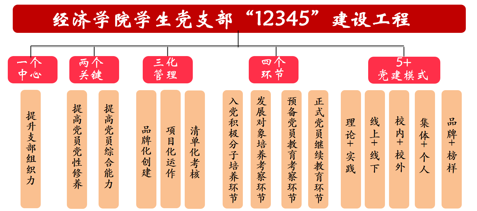 学院党委一直把学生党建工作摆在突出位置,加强顶层设计谋划,以“一支部一品牌”为建设理念,深入实施“12345”学生支部建设工程,凝练形成“五抓五促”工作机制,有效提升了学生党员教育培养实效。在培育创建过程中,学院党委打造党员理论学习、实践活动、工作监督三个品牌、创新工作机制、多措并举开展党员教育。