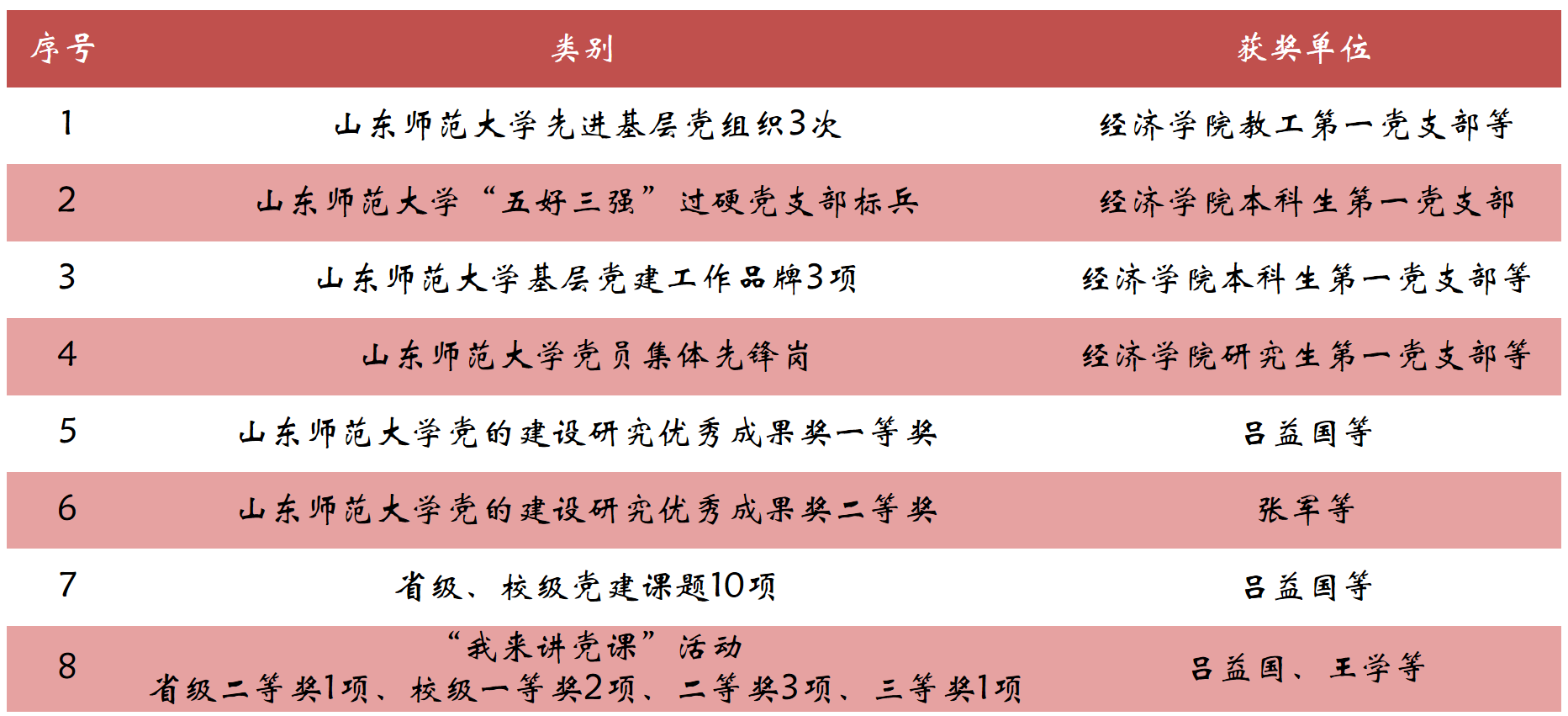 在“五融五促”党建工作思路的引领下,学院党委获批学校首批党建工作标杆院系;两名教师获评山东省教育系统优秀党务工作者、党务工作先锋。学院党委高度重视党建研究和品牌建设,立项省级、校级党建课题10余项,获评山东高校党的建设研究优秀成果一等奖、山东高校组织工作创新三等奖等奖项。