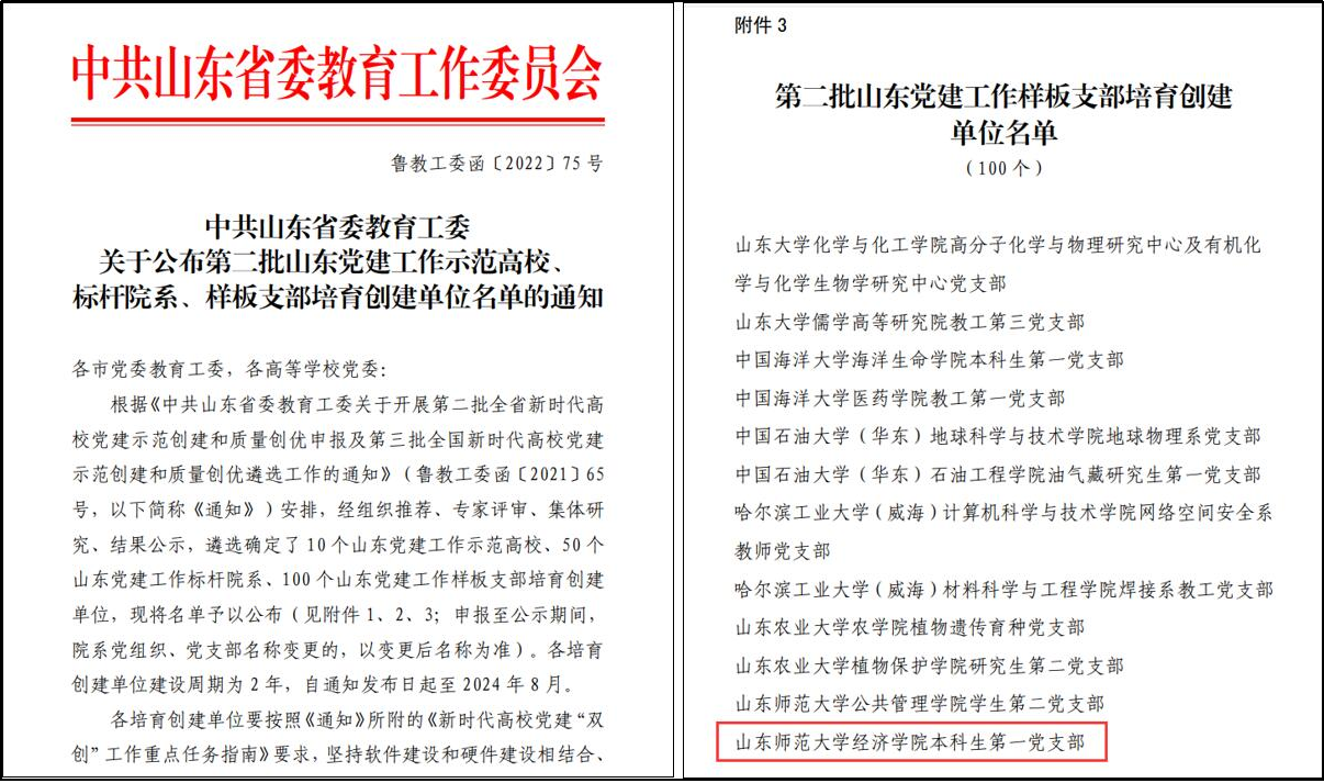 经过多年培育,英国正版365首页本科生第一党支部获评全国、全省党建工作样板支部;众多学生党员创先争优,涌现出山东省高校十大优秀学生、山东省向上向善好青年等大批优秀学生,获得“挑战杯”“互联网+”等高水平竞赛国家级奖项20余项、省级奖项50余项,学生党员获得省级综合性荣誉150余项。