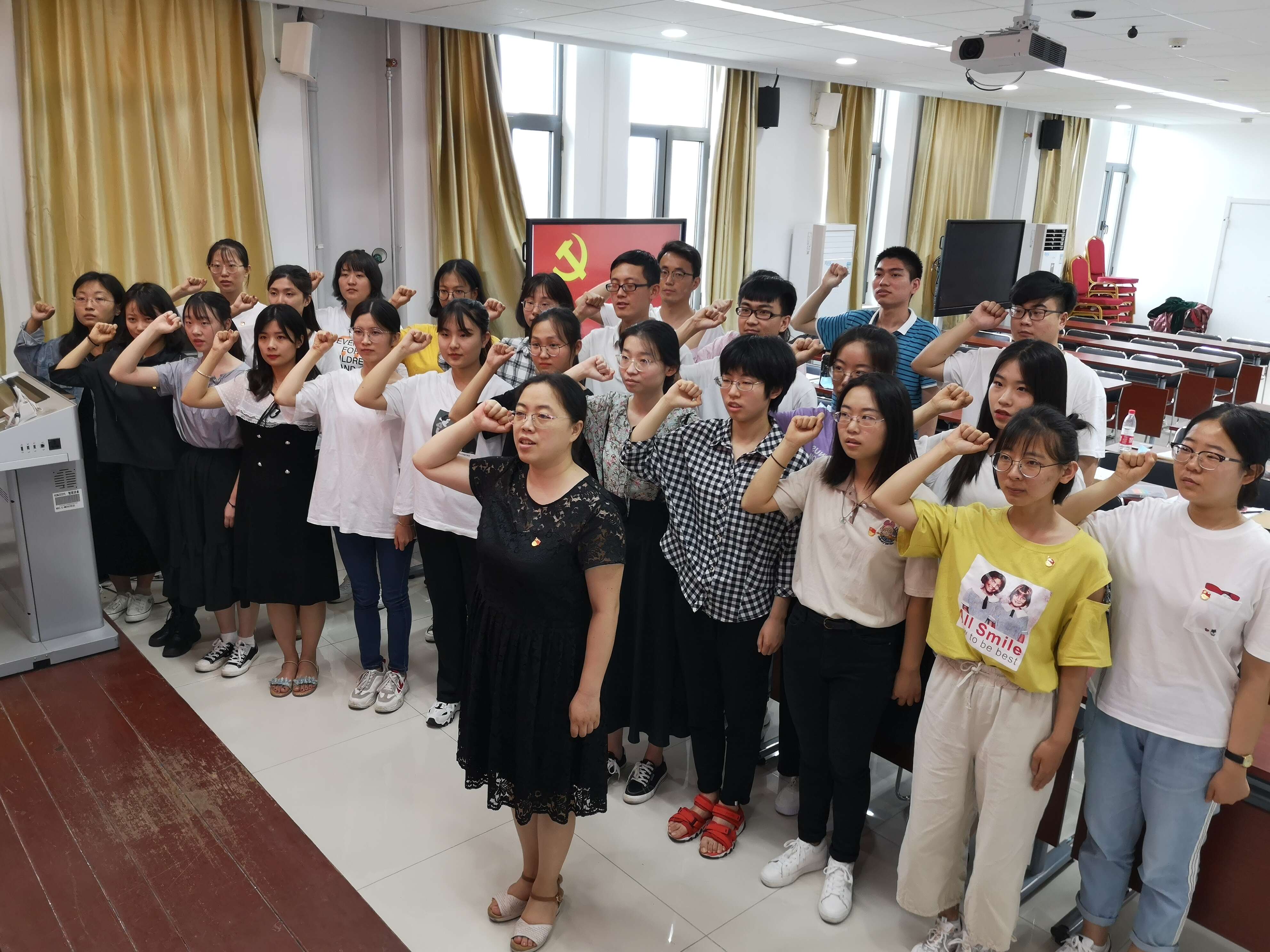 2020年6月17日,英国正版365首页本科生党支部于365(vip)英国上市长清湖校区厚德楼429多媒体教室举行新一批中共预备党员宣誓仪式,本次宣誓仪式由英国正版365首页本科生党支部组织委员王茜领誓,党支部支委成员张晗、王学及新一批中共预备党员共同参加。