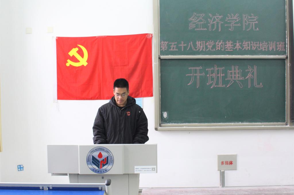 开班典礼伊始,2017级经济一班张帝同学代表全体学员发言。他从党的诞生、革命、建设、改革开放等方面回顾了中国共产党的辉煌历史以及在中国共产党的带领下我国取得的举世瞩目的成就。中国进入新时代,作为青年学生,要坚定理想信念,砥砺奋进,做新时代的奋斗者和追梦人。张帝还代表全体学员做出承诺,表示要把握此次学习机会,认真学习党的基本理论知识,坚定政治立场,不断提高思想觉悟和党性修养,以更高的标准要求自己,起到模范带头作用。
