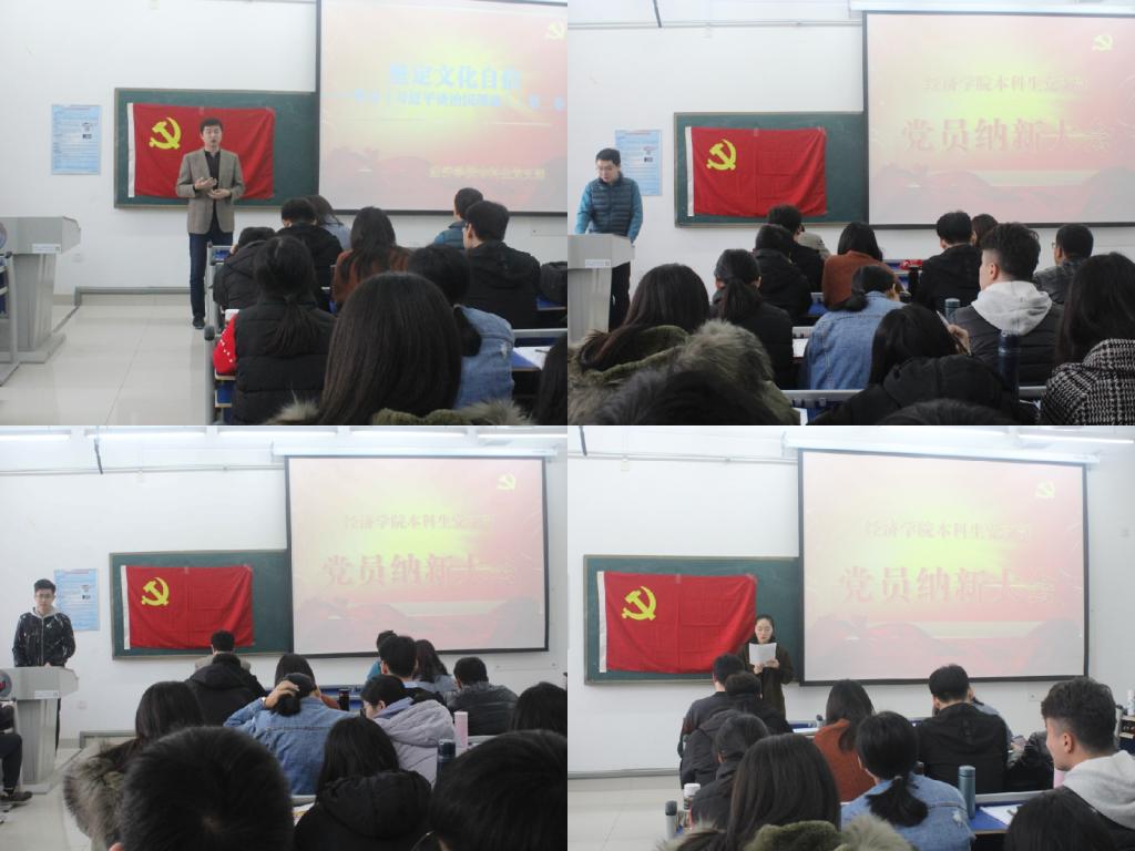 本次党员纳新大会主要就文玉慧等27名同志的入党事宜进行讨论。大会在庄重肃穆的国际歌中正式开始。首先由党员发展对象逐一宣读《入党志愿书》,汇报自己对党的认识、入党动机、本人履历及现实表现等情况,表达忠诚于党的态度,完善自我的决心和坚定学习的信念。而后,王学、张晗、杜星辰、吴浩然等同志作为入党介绍人依次客观详实的向支部介绍文玉慧等27名党员发展对象的基本情况、政治觉悟、表现状况、入党动机、培养教育过程及不足之处,做出同意其入党的建议。接着,与会党员充分讨论,杜星辰、王文畅、柴雪等人对文玉慧等27名申请人的考察情况进行实事求是的分析讨论,肯定其成绩,指出其不足并提出改进建议。