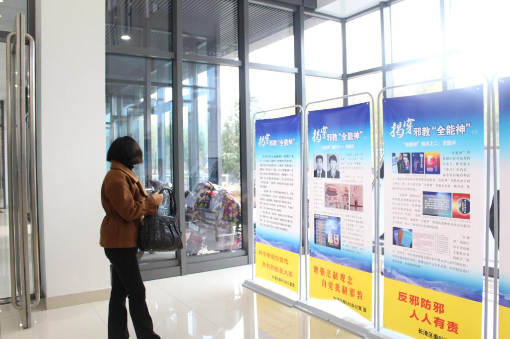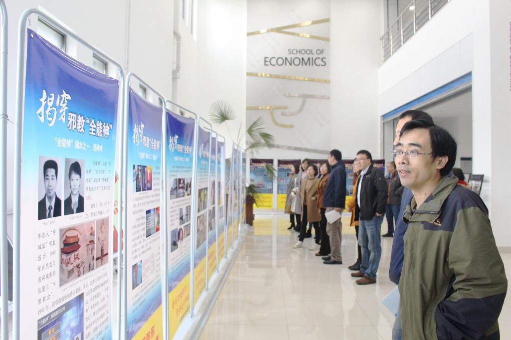 由21块展板组成的图文展直观明了,深刻揭露邪教“全能神”的种种行径。图文展包括邪教“全能神”的基本信息、骗术手段、危害、邪教头目四方面。教职工们依次观看阅读,并不时发表个人看法。他们了解到邪教“全能神”是一个典型的假借宗教之名,行害人之实的邪教组织,破坏人民正常的生产生活秩序,攻击党和政府,严重危害着人民生命财产安全和社会稳定。宣传栏中详细介绍了邪教“全能神”的四大骗术,分别为造神术、洗脑术、诱骗术、玄虚术,同时通过图片形式举出受害者实例,其惨烈场面让人触目惊心。由此引出邪教“全能神”残害生命、破坏家庭、大肆敛财、扰乱社会四大危害,老师们纷纷讨论起邪教对于社会秩序的破坏性。此外,宣传栏中指出,对“全能神”邪教组织的违法犯罪活动,公安机关给予坚决打击,新闻媒体进行揭示纰漏,基层党政组织开展广泛的警示教育活动,各地群众坚决抵制,从而呼吁大家坚决对“全能神”说不,时刻警惕邪教“全能神”的新动向,加强防范。最后对邪教头目的介绍,更是将邪教“全能神”进行了系统剖析,深入强调邪教的危害性。参观结束之际,教职工党支部成员姚侃表示,邪教组织对社会危害巨大,作为老师有重大的责任意识做到不信奉、不谣传,同时引导学生树立正确的人生观和价值观。