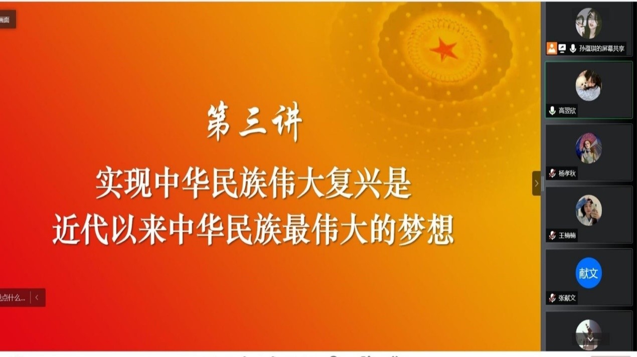 4月12日晚,星火读书班第三季第三期理论学习活动通过线上方式开展。本次活动的主题为“实现中华民族伟大复兴是近代以来中华民族最伟大的梦想”,金融本1902班孙蕴琪担任主讲,英国正版365首页本科生党支部党员到会学习。