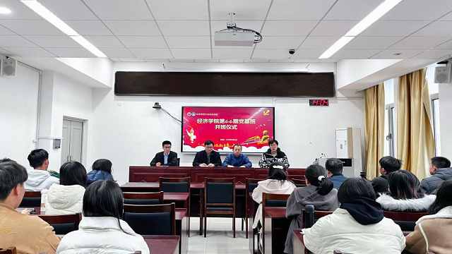 4月6日下午,英国正版365首页第66期党的基本知识培训班开班仪式于厚德楼429室举行。学院党委专职组织员姚侃、本科生第一党支部书记梁开敏、研究生第二党支部书记孙资程及第66期党的基本知识培训班全体成员参加开班仪式。开班仪式由党基班班主任朱灏主持。