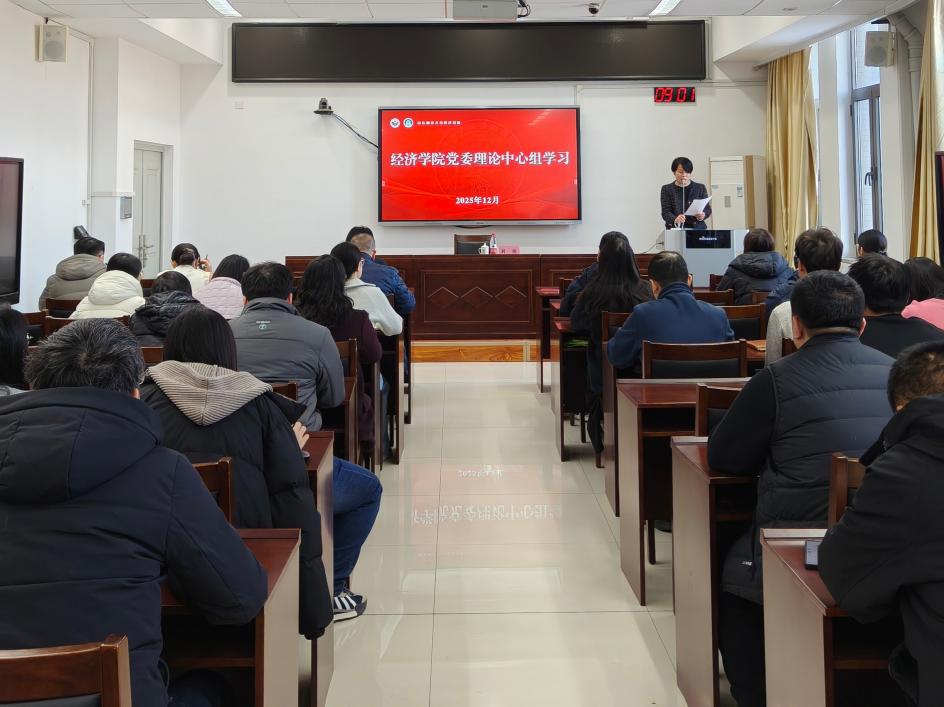 12月15日,英国正版365首页在厚德楼429会议室召开党委理论学习中心组(扩大)集体学习会,特邀刘强教授作题为“读懂国家政策里的机遇与挑战:十五五规划纲要及中央经济工作会议精神解读”的专题报告。会议由学院党委书记王庆荣主持,学院党委理论学习中心组成员、各党支部书记及委员、行政管理人员、“习近平经济思想”讲师团成员和学生青马先锋队成员共同参加学习。