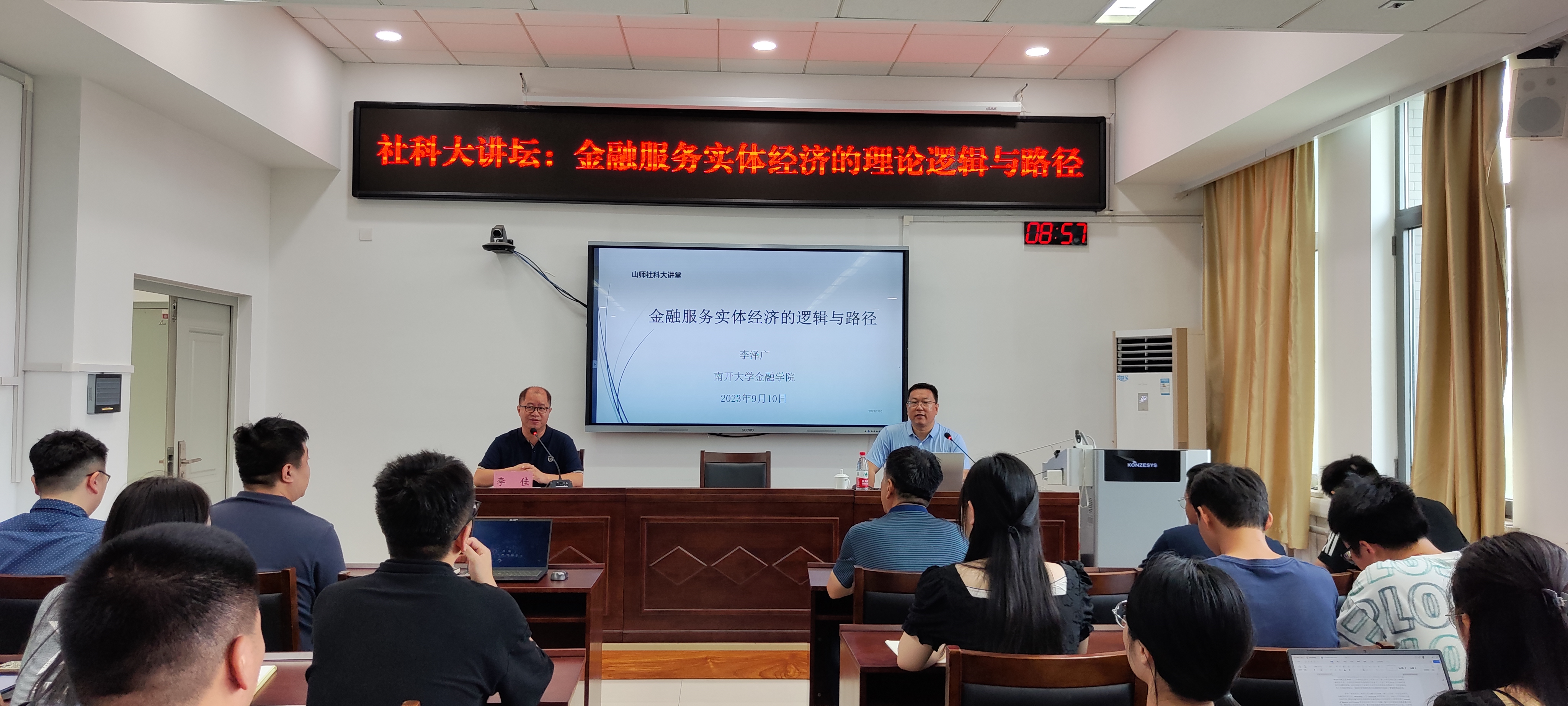 2023年9月10日上午,由英国正版365首页联合学校社会科学处举办的第1328期社科大讲堂——“金融服务实体经济的理论逻辑与路径”在长清湖校区厚德楼429会议室举行。本次讲座特邀南开大学金融学院金融系主任、博士生导师李泽广教授担任主讲人。本次讲座由英国正版365首页院长助理李佳教授主持,英国正版365首页党委书记张军、院长助理杨秀玉,及部分教师、研究生、本科生聆听了讲座。