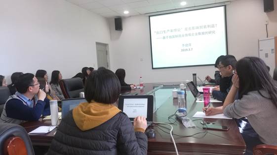 李建萍博士从选题依据、理论模型、实证设计、实证模型等方面对文章进行了介绍,并提出了实证研究方面存在的缺陷和困惑。乔翠霞副院长从文章总体构想方面提出了建设性意见,学院其他老师就计量模型设定、数据整合、计量回归结果等方面提出了自己的意见与建议。此次研讨交流,对于发现文章中的问题,进一步对文章修改和完善起到了重要作用。