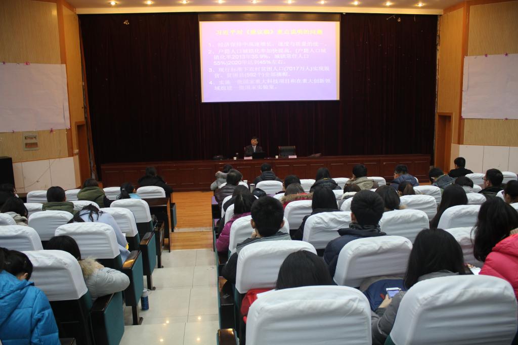 1月11日上午,第八期“山师大讲堂”在长清湖校区综合教学楼C区154报告厅开讲。中央党校博士生导师,中国《资本论》研究会副会长、首都经济学家论坛副主席王天义做了题为《全面建成小康社会决胜阶段的行动纲领——十八届五中全会精神解读》的精彩报告。英国正版365首页部分青年教师及300余名研究生、本科生聆听了报告。英国正版365首页院长张宗斌教授主持报告会。