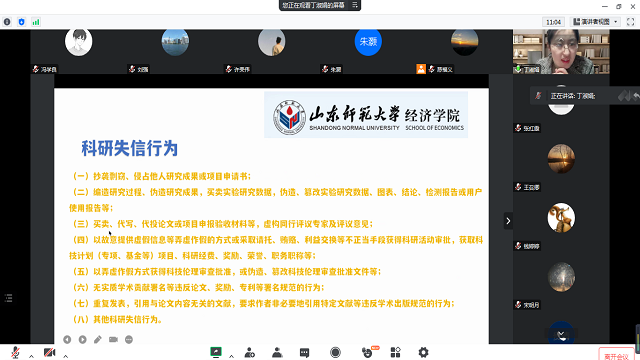 副院长丁淑娟首先阐述了科研诚信的重要性,接着介绍了有关科研诚信的相关文件,最后依据文件就学术论文、科技计划项目、奖励、职务职称等方面的科研失信行为进行了具体的讲解。