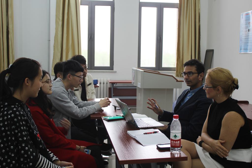 下午,巴图博士与首先与我院申请参加“2+2”双学士学位联合培养项目的5名本科生、“1+1+1”双硕士学位项目的2名研究生及短期学分项目的6名本科生进行了座谈。申请学生逐一用英文做自我介绍,从各自关心的项目出发,就培养模式、接收学科专业、报名时间、项目特色等事由提出了疑问。巴图博士与瓦伊尼女士逐一耐心细致地给予解答,明确了申请程序的操作步骤和时间节点,大大加快了项目的实施速度,确保学生能按阿伯丁大学的录取要求完成申请程序。