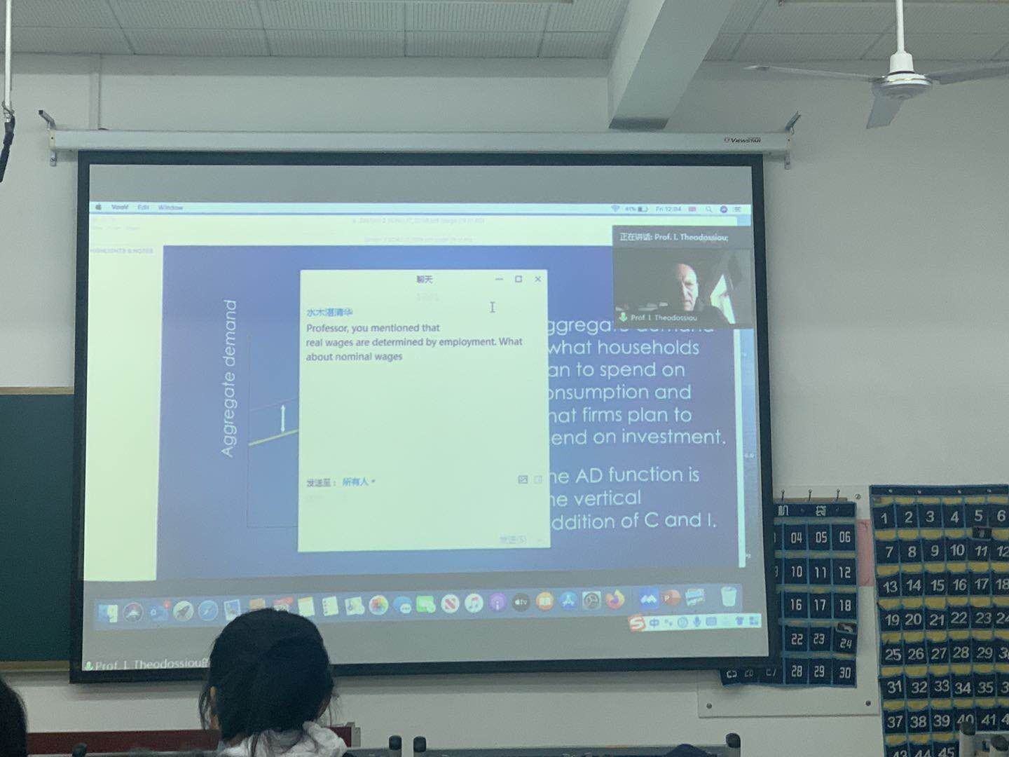 此次线上教学活动是365(vip)英国上市与英国阿伯丁大学联合培养项目中的一部分,由两校教师合作共同讲授《宏观经济学》课程。该课程旨在使学生既掌握宏观经济学基础原理、提升学术素养,又充分接触国际前沿的宏观经济学理论、培养国际学术视野。受疫情影响,原计划亲自来学院授课的Ioannis教授不得改用线上教学的方式。虽然师生间无法面对面交流,但Ioannis教授生动的语言、详实的授课内容、新颖的观点极大地激发了学生们的学习热情,活动实现了良好的教学效果。