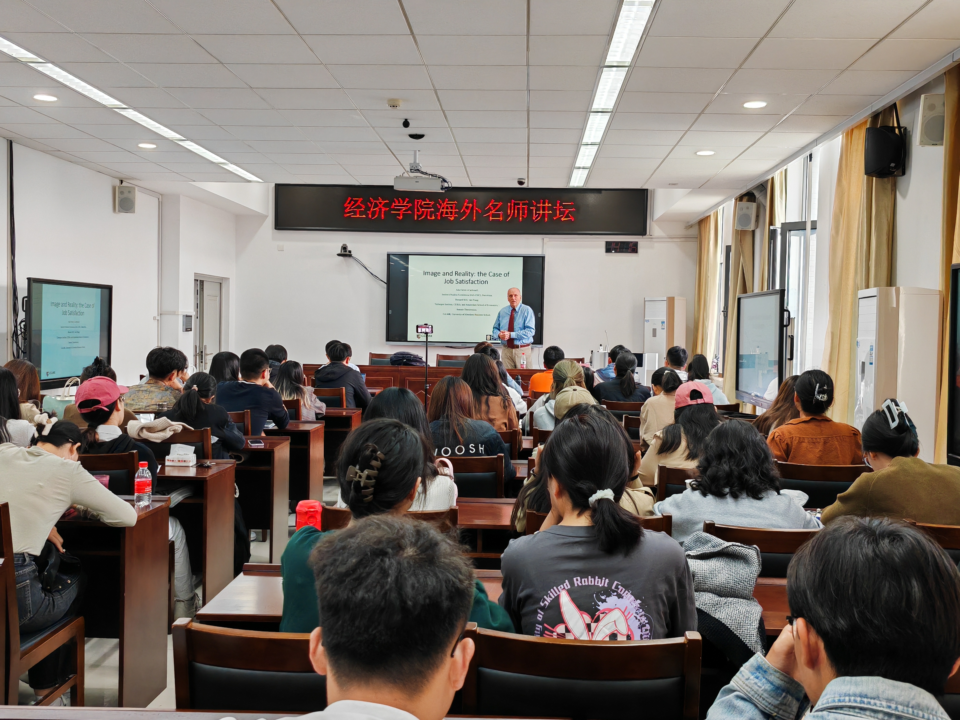 10月18日,英国正版365首页于厚德楼429会议室成功举办海外名师讲坛,学院特邀英国阿伯丁大学Ioannis Theodossiou 教授做主题为“Image and Reality: the Case of Job Satisfaction”的学术讲座,英国正版365首页王骥老师主持,学院研究生参会。