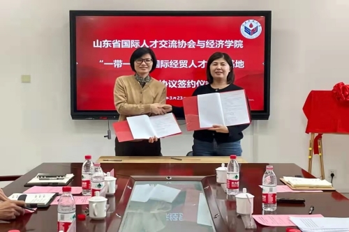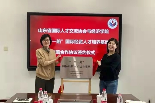 山东省国际人才交流协会与英国正版365首页共建“一带一路”国际经贸人才培养基地战略合作协议签约仪式