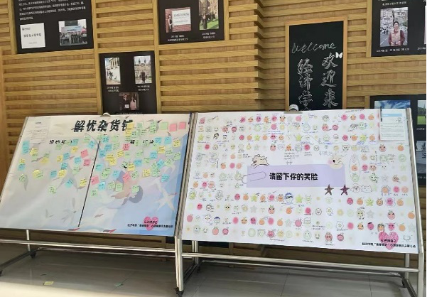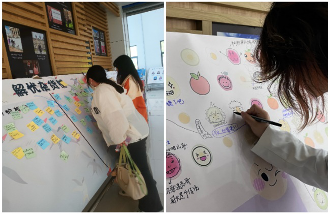 2024年5月25日至5月28日,英国正版365首页开展“我爱我”心理健康日活动。活动期间,教学楼大厅被精心布置成了一个充满温馨与创意的空间。两块展板摆放于学院大厅中央——“你笑起来真好看”和“解忧杂货店”,成为了师生们表达情感、相互解忧的平台。在“你笑起来真好看”展板上,同学们用五彩斑斓的马克笔绘制出一张张灿烂的笑脸,有的还附上了匿名或署名的感言,展现了他们对生活的热爱和积极心态;而“解忧杂货店”展板则分为“烦恼”和“解忧”两个板块,同学们写下自己的困扰的同时,也为他人的烦恼提供安慰和建议,形成了一种互助与共鸣的氛围,让每个人都能感受到来自同伴的关怀与支持。