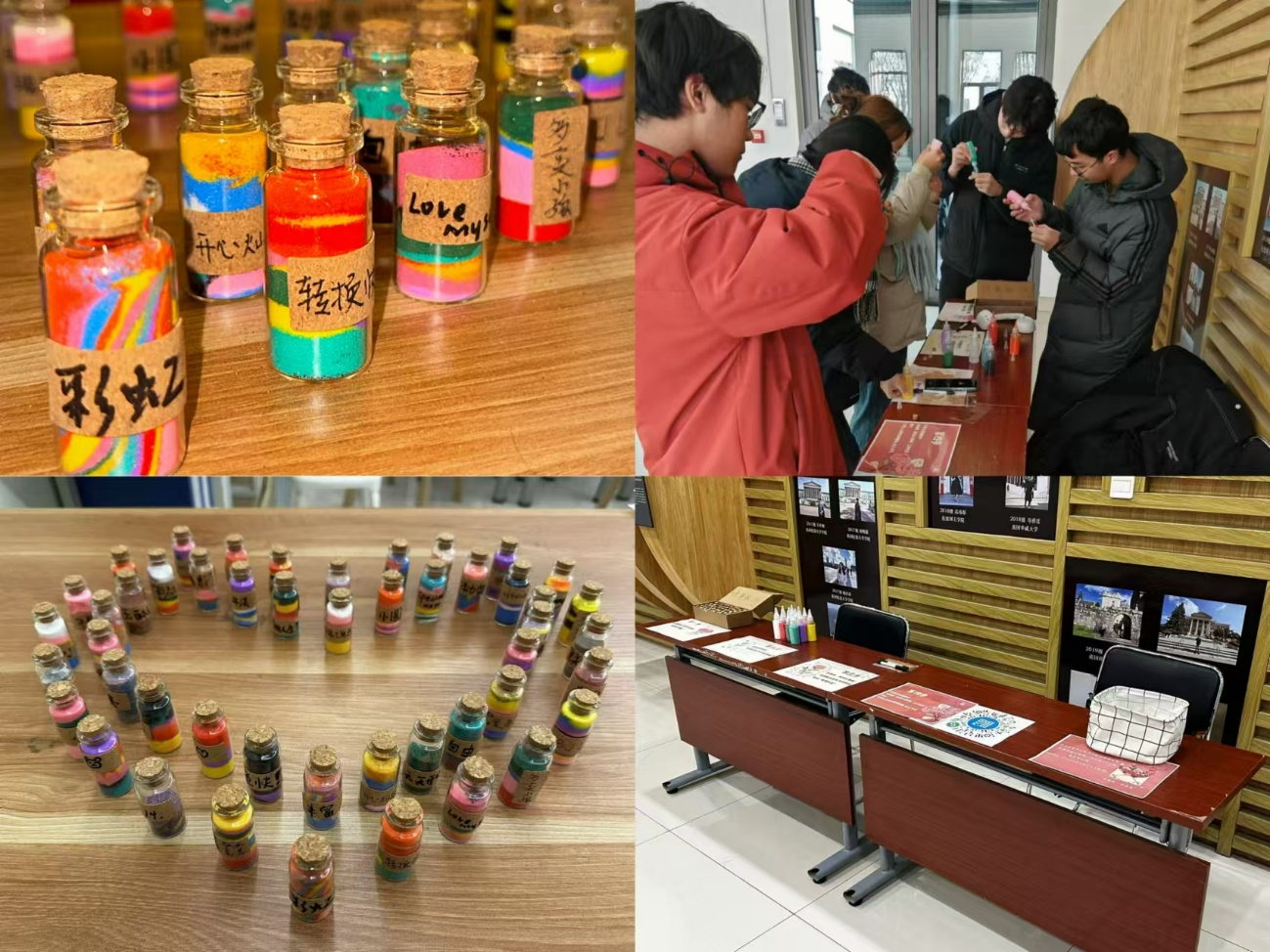 此次“青春驿站”彩色沙瓶DIY活动为同学们提供了一个展现创造力的平台,形式新颖,受到同学们的喜爱。