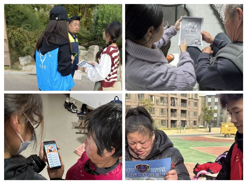 实践阶段,各小组奔赴社区、学校、乡村等地,面向不同群体开展形式多样的反诈防骗宣讲活动。他们用生动的案例、通俗的语言,向群众揭露诈骗套路,传授防骗技巧,帮助群众筑牢反诈防骗意识。在宣教中,团队成员对居民强调反诈防骗应从自身做起,提高自身的警惕心理与防范心理,绝不向陌生网友透露自己的私人信息。