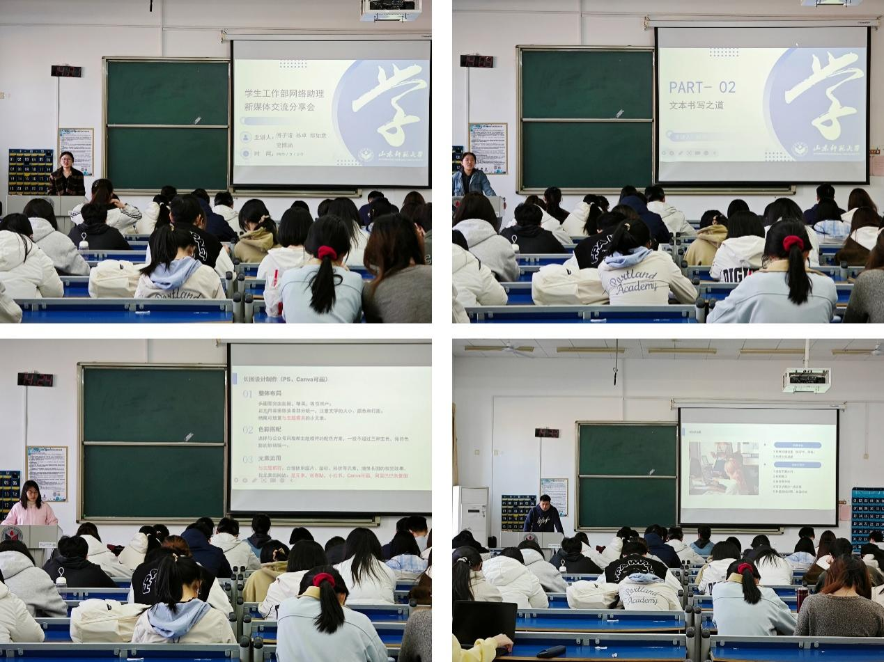 2025年3月20日,英国正版365首页青年媒体中心在长清湖校区厚德楼105教室举办新学期第三期宣传业务能力培训。本次培训邀请365(vip)英国上市学生工作部网络助理傅子诺、孙卓、郑如意、史博涵担任主讲,英国正版365首页青年媒体中心的全体成员以及学生组织各部门的宣传骨干参加学习。