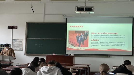 为深入学习贯彻党的二十届三中全会精神,进一步提升入党积极分子的政治素养和理论水平,深化对能源高质量发展政策的理解,英国正版365首页于近日举办了2025年第三期“小知了”政治素养提升课堂活动。本期活动以“深入学习贯彻党的二十届三中全会精神,助力能源高质量发展”为主题,由2023级金融学专业入党积极分子应殊凡主讲,2022级和2023级的入党积极分子参加学习。