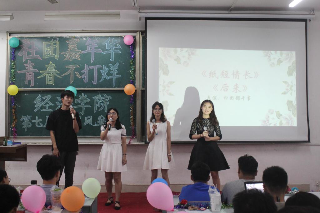 本次展演共有十个社团参演,各社团精心准备,力争以最好状态展现社团风采。其中,1758社团以舞蹈《Black Dress》火热开场,曼妙的舞姿、动感的旋律展现出1758社团独有的活力和激情。奕轩棋画社的展示在悠扬动听的《青花瓷》中缓缓展开,画作、剪纸、书法,书香气息弥漫。彼岸话剧社以话剧《梦》参与展演,遥不可及的演员梦与不顾一切的挣扎追逐直到最终实现梦想的故事,被社团成员演绎地淋漓尽致,同时也巧妙传达出彼岸话剧社的舞台将留给每一位有梦想的经院学子和彼岸话剧社也比必将砥砺前行等主旨。经略天下的魔术表演《障目神水》让人眼前一亮,水倒入杯中神奇消失,报纸盛水而完好无损,点杯成水让在场观众拍手叫绝。青年领导力社团借用“奇葩说”形式,通过尖锐有力的言辞表达个人观点,并适当穿插诙谐语言,将全场氛围推向高潮。星火公益社则将朗诵、舞蹈和歌曲巧妙融合起来,古香古色的红扇随旋律起舞,轻松活泼的曲风为在场观众呈现了一场视觉盛宴。