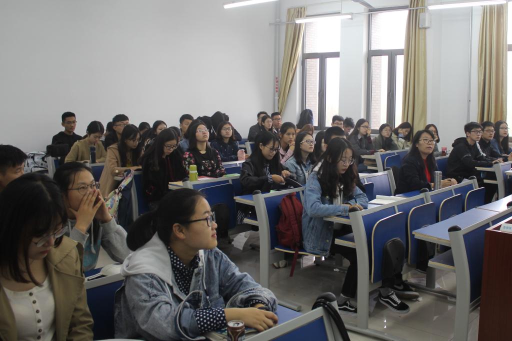 吕丽娟则以10月10号国务院展开十八大以来经济领域成就的新闻发布会为切入点,以“新理念引导新常态,新实践谱写新篇章”为主题展开讲解,指出当下的经济新常态“意味着中国经济已进入一个与过去30多年高速增长期不同的新阶段”的内涵。通过准确而直观的图表展示,详细讲述了“中高速增长”、“经济结构优化升级”、“新旧动能加快转换”等济新常态特征,并着重指出需求结构方面,消费需求逐步成为需求主体,区域差距将逐步缩小,民生改善成效显著,在科技创新取得重大突破的同时,大众创业万众创新蔚然成风,社会发展将迈向中高端水平。最后,她通过介绍供给侧结构性改革、一带一路、精准扶贫及中国加入SDR说明了新常态下的新实践。切合专业特色的讲解,使同学们在开阔视野的同时,提升专业素养。