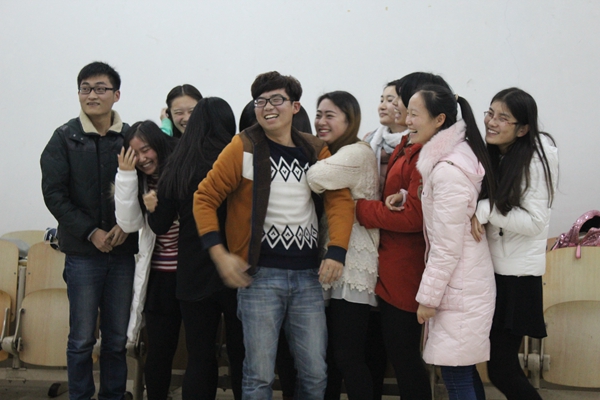 本次培训改变传统以讲座或报告的形式,由主讲人单一传授的受众模式,采取团体辅导,通过团体游戏与自我感悟分享两部分交替进行的形式,让同学们在“玩”中学、“玩”中悟、“玩”中成长。游戏开始前,纪念首先用“团队是什么?”、“工作中如何更好地传递消息?”等问题,将同学们带入本次培训活动的主题,并希望同学们通过本次活动得出自己满意的答案。在“一块五毛”的游戏环节中,纪念首先肯定了各位同学的竞争意识,但同时希望大家能时刻牢记团队的存在与重要性,懂得在关键时刻能为集体的胜利而牺牲自我,实现团队利益的最大化。而在接下来的“说的啥?”游戏环节中,通过一个简单故事在团队同学当中的传递复述,让团队成员充分感受到彼此间工作的困难和不易,进而纪念总结道,在工作中不可避免会因为信息传递方式不当等原因造成工作在执行过程中出现事与愿违的情况,而在这种情况下,团队成员之间的包容与理解就显得尤为珍贵。因此,团队内部的凝聚力往往对事情的执行情况起到至关重要的作用。在随后的“驿站传书”游戏中,通过对三种手势赋予的特定含义,在队员之间传递指定数字,游戏结束后,队员们纷纷对游戏中出现的问题进行了反思。学生会文艺部部长赵宁表示,在工作中团队成员要形成应有的默契,并对突发情况懂得灵活变通。纪念也在随后的总结中指出,凝聚力与执行力是良好团队必不可少的优良品质,在日常学生工作中,一定要注意提高团队合作的执行效率,以身作则,发挥学生干部的榜样带头作用。而在最后的“按图索骥”游戏中,面对队员出现的失误,团队给予其安慰与包容,从而避免了团队执行力的降低,并最终克服重重困难,顺利完成任务。在最后的总结阶段,纪念再次抛出开场向大家提出的问题,并邀请各位队员发表观点。学生会主席李凯鹏谈到,正是学生会团队的大力支持与帮助,让他在工作中逐渐获得自信,并坚定了作为学生会主席带领团队走向成功的动力和信心。活动结束后,纪念和与会同学进行了深入交谈,并亲切合影。