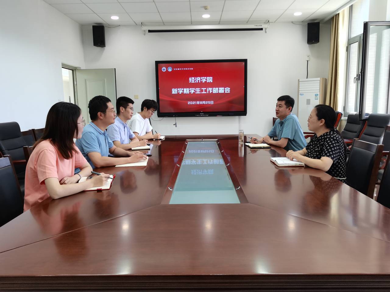 首先,会议就暑假中党团建设、毕业工作、新生录取、迎新筹备、社会实践等工作进行了总结。学院本科生党支部、经英团校开展暑期线上“星火读书班”党史学习教育,集中学习 12 次,学习效果良好。学院顺利推进2021届毕业生就业工作,就业率不断提升。学院2021年共录取本科生新生 225 人,研究生新生 70 人,各项迎新工作有条不紊的进行。除此之外,学生组织换届调整工作,学代会筹备工作,学生组织工作规范修订工作均已圆满完成。暑期中,学院顺利推动开展科技创新和社会实践活动, 共组建83支“三下乡”队伍,其中1支队伍入选山东省重点队伍,11 支队伍被校外媒体报道。