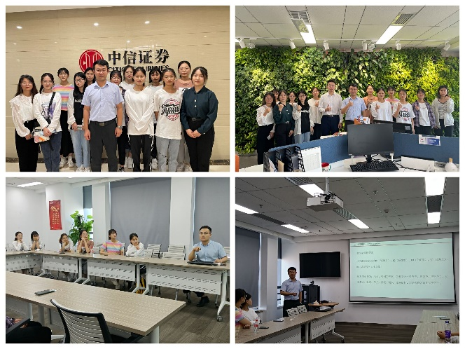 首先,中信证券对同学们的到来表示欢迎。吴总经理详细地向同学们讲解了公司基本情况、国内经济环境以及其个人经历,帮助同学们进行职业规划,鼓励同学们积极进取,在未来收获自己理想的工作岗位。随后,高经理带领同学们参观了公司的工作环境、基础设施、管理制度和企业文化等,帮助同学们进一步了解公司,并针对工作内容、准入资格以及薪酬福利待遇进行细致解答和深入交流,为同学们申请公司岗位提供指导和帮助。接下来,高经理邀请三位入职一至两年的优秀同事向同学们近距离地介绍工作的具体内容,如管理客户资产和联系客户资源的方式和流程等,并与同学们互相交流,解答有关专业、工作等方面的相关问题。最后,各位同学依次进行面试、投递简历。2018级王静文同学表示,此次中信证券的参观学习使我收获良多,让我更加真实地感受到在公司工作的环境及氛围,并了解到更多的相关专业知识,为接下来的求职就业提供了很大的帮助。
