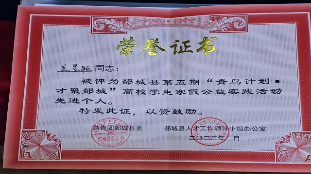 通过本次活动,吴昱颖不仅拓展了视野,还学习了许多技能,提升了自己的工作能力。同时,本次活动也有利于增强大学生的责任意识,明确青年学子反馈家乡,自觉担当的责任,为家乡的建设贡献一份自己的力量。