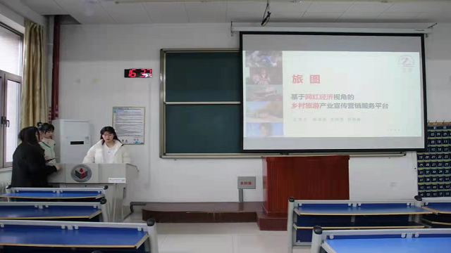 答辩会现场,各项目汇报人依次就项目课题开展PPT讲解,从项目背景、产品服务、市场分析、盈利模式、营销策略等方面展示了研究课题的阶段性成果。首先,旅图实践队项目汇报人谢柔柔向指导老师们系统讲解团队研究课题:旅图——基于网红经济视角的乡村旅游产业宣传营销服务平台,她由发掘乡村自然、人文资源谈及乡村品牌振兴,全面讲解课题创新创业思路。随后,吕益国针对课题的目的性、创新性、可行性等多个方面对其进行提问,针对如何进一步突出核心竞争力、优化商业模式、展现社会价值等方面进行深入交流,并对后期修改完善工作提出具体意见。最后,指导老师针对“优蒜宝——大蒜行业综合服务提供平台”和“OMO模式未来学校——未来教育领军者”以及“旅图——基于网红经济视角的乡村旅游产业宣传营销服务平台”课题进行分析,从项目本身的改进方法到汇报人表述技巧的提升等方面提出自己的建议,并模拟正式比赛的提问环节,以考察汇报人的临场反应能力。