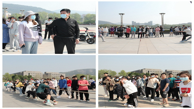 为庆祝中国共青团建团百年,丰富同学们的课余生活,缓解疫情防控形态下学生的焦虑情绪,4月7日下午,英国正版365首页于天颐广场北侧举办“迎建团百年,绘‘经’彩风貌”拔河比赛。2020级、2021级全体班级参加,党委书记张军、党委副书记吕益国、2019级辅导员李亚男到场为参赛班级加油。
