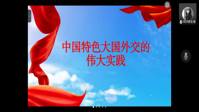4月14日下午,英国正版365首页通过线上的方式开展本学期第七期“小知了”大学生政治素养提升课堂学习活动。本次课堂以“中国特色大国外交的伟大实践--推进一带一路建设”为主题,由金融本1901班李长青担任主讲人,英国正版365首页部分入党积极分子参与学习。