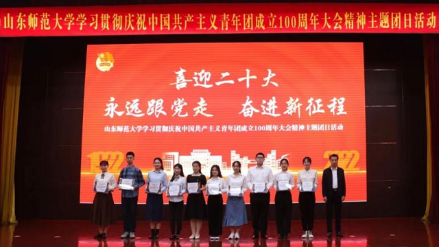 在学院团委的教育培养和服务支持下,青年学生不断成长,在各项竞争性评选中表现优异,1人获评山东省向上向善好青年,2人被评为山东师大“学子之星”,4人获评山东省优秀学生、1人获评山东省优秀学生干部,4人获评国家奖学金,1人获评泉城奖学金,2人获评校长奖学金,2人获评校研究生“学术十杰”,1人获评校十佳学生干部,1个班集体获评校十佳班集体,1个团支部获评校十佳团支部。1人入选中国青年志愿者扶贫接力计划研究生支教团,3人入选校“青年先锋锻造计划”,青年引领力不断增强。