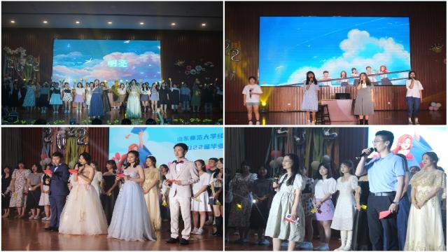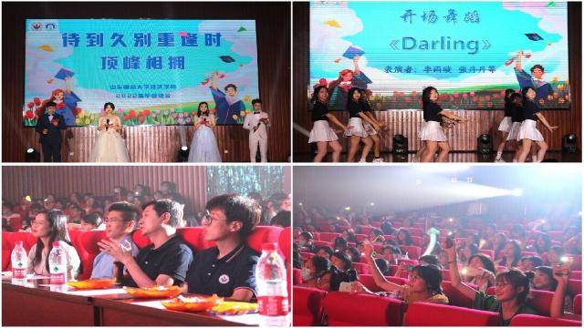 在“恰逢其时,一路盛放”篇章中,同学们集体观看视频,共同回忆大学生活中印象最深的故事、最遗憾的事情以及最想感恩的人,表达了毕业生对山师校园的不舍,对相伴四年成长的老师、同窗的感谢以及对未来的期盼。随后,刘英倩深情演唱的《外面的世界》表现了同学们从象牙塔里的青年学子逐渐成长走向社会的过程,展现了奔赴未来、肆意飞翔的青春愿景。倪瑜婧、张梦宇带来舞蹈《Havana》,飒爽的舞姿和流畅的动作表现了经院学子朝气蓬勃的精神面貌;研究生胡淇带来的歌曲《New boy》和《爱你》唱出了青春活力与风采,将全场氛围推向高潮。