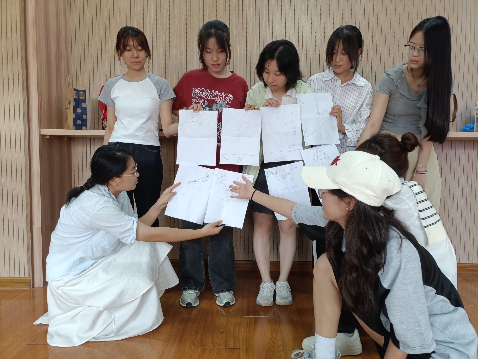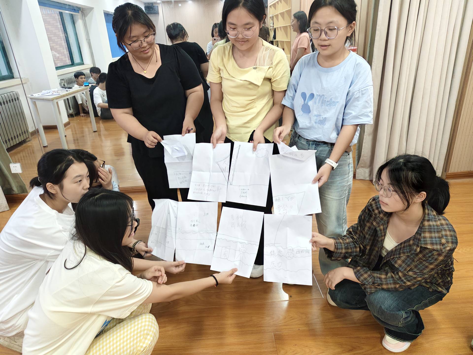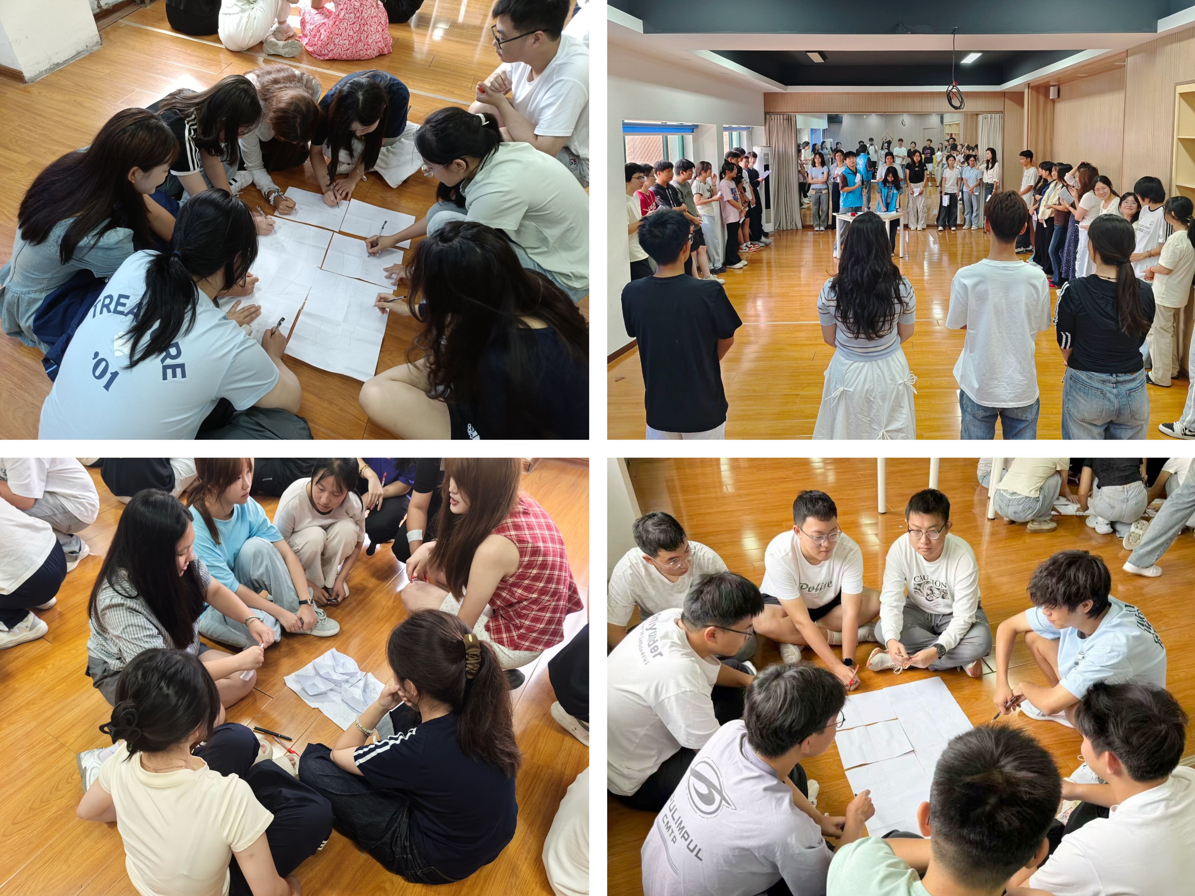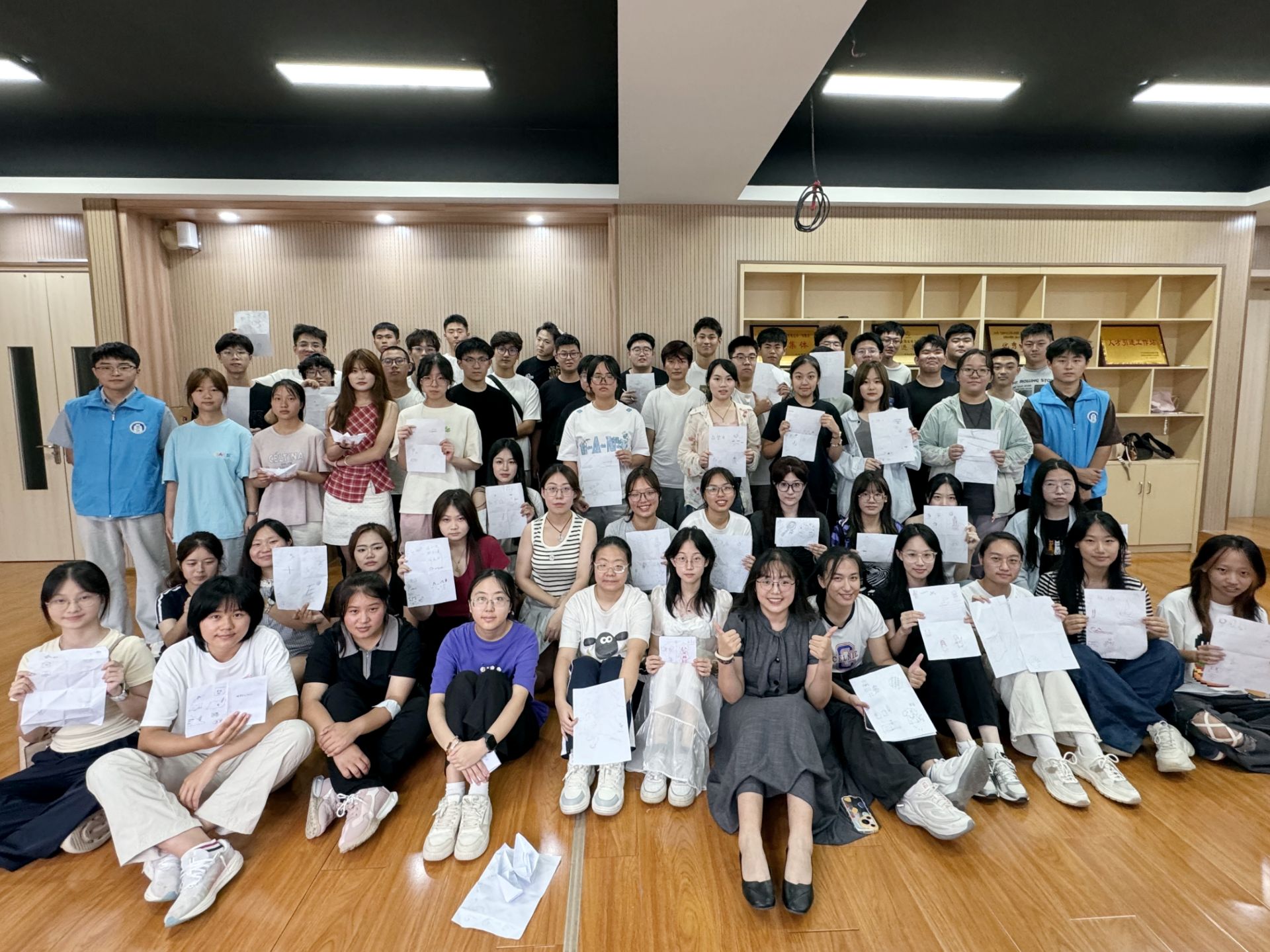 紧接着的“未来之舟”环节,各小组齐心协力,在白纸的背面共同绘制承载班级梦想的帆船。十五分钟里,有人勾勒、有人涂色、有人书写寄语、有人折成纸船……每艘船都创意满满,凝聚着大家对大学生活的共同期待。绘制完成后,各组轮流介绍设计理念,讲述船名、图案和寓意,掌声与欢呼不断。最后,主持人为同学送上鼓励与祝福,希望大家无畏挑战、携手同行。同学们也从最初的陌生紧张,走向了欢笑与默契——一段新的集体之旅,正从这里启航。