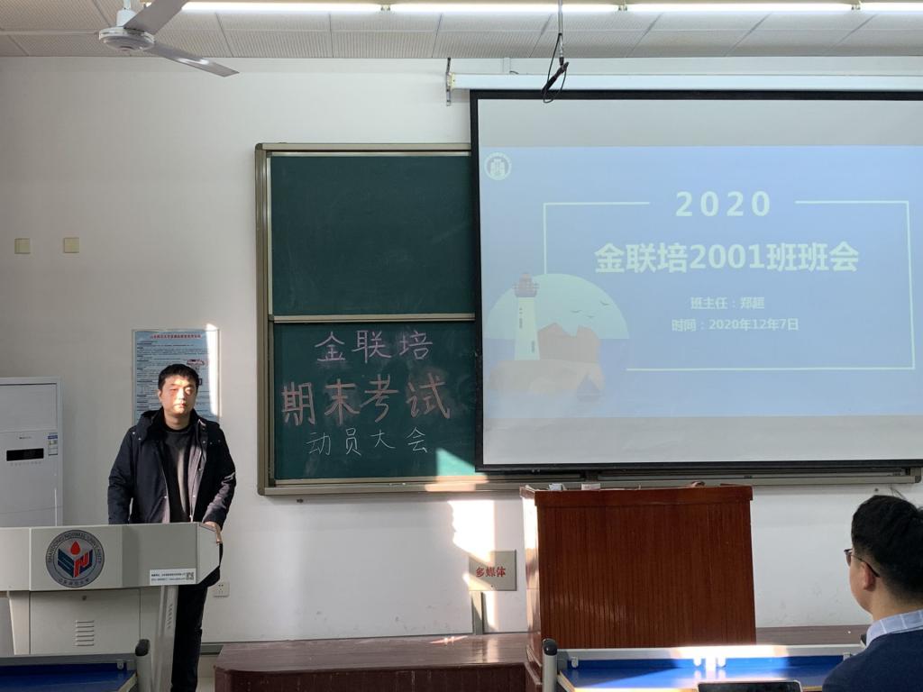 12月7日下午,英国正版365首页金联培2001班于厚德楼204教室举行期末考试动员大会班会,金联培2001班班主任郑超担任主讲,金联培2001班全体同学到场参加。