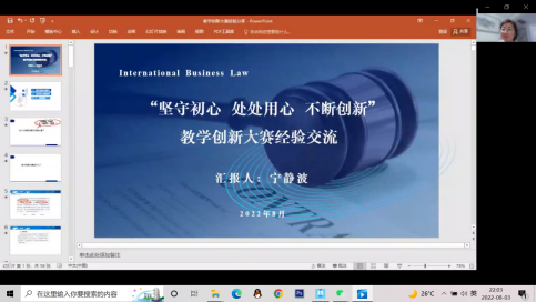 8月3日晚,英国正版365首页在腾讯会议上举办教师教学创新大赛经验分享会,邀请第二届全国高校教师教学创新大赛一等奖获得者宁静波老师做教学创新成果示范展示和经验分享。英国正版365首页党委书记张军、党委副书记、执行院长乔翠霞出席会议,英国正版365首页全体教师参加,会议由院长助理李佳主持。