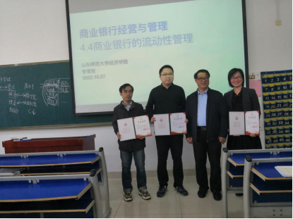 10月27日上午,英国正版365首页第二届“启航课堂1+1”活动第二场公开课在厚德楼103教室举行,李雪岩老师讲解《商业银行经营管理》“商业银行现金资产管理”章节。副校长张茂聪、教务处处长张宗斌、教师发展中心副主任丁同楼一行莅临指导,英国正版365首页党委书记张军、党委副书记、执行院长乔翠霞、副院长宁静波、院长助理李佳、金融系主任张凤兵陪同。部分青年教师参与观摩。