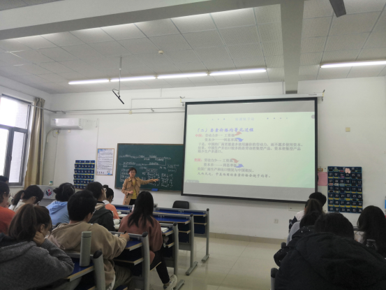 本次公开课特邀教务处教学评价科乔伊老师、校级督导专家包玉香教授、姜彤彤教授出席,部分院内青年教师参与。公开课分教学和课后讨论两个环节。在前期观摩学习指导老师课程的基础上,在指导老师的悉心指导下,新开课老师对教学设计进行了仔细打磨和优化,并在公开课上进行了完整展示。董老师的讲授内容详实,有效结合了经济热点,生动易懂。教学设计逻辑严密、思路清晰。学生听课认真,课堂效果良好。讨论环节,各位观摩老师肯定了课程内容上的优点,对课堂实施过程提出了建议。乔伊老师建议增加师生互动环节,活跃课堂氛围。包玉香老师建议针对涉及的前期知识点设计提问环节,以便巩固加深。董老师认真听取了建议,承诺在后期教学中优化精进。
