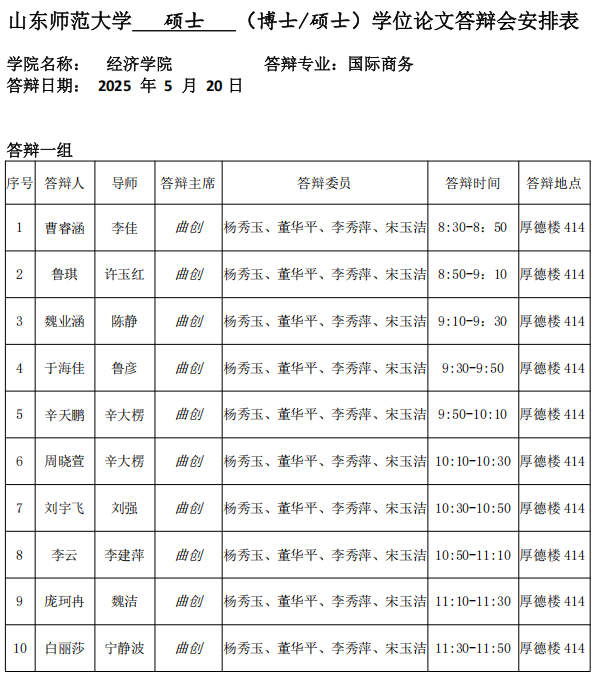 2025.5.20英国正版365首页2025届国际商务专业硕士研究生答辩公告