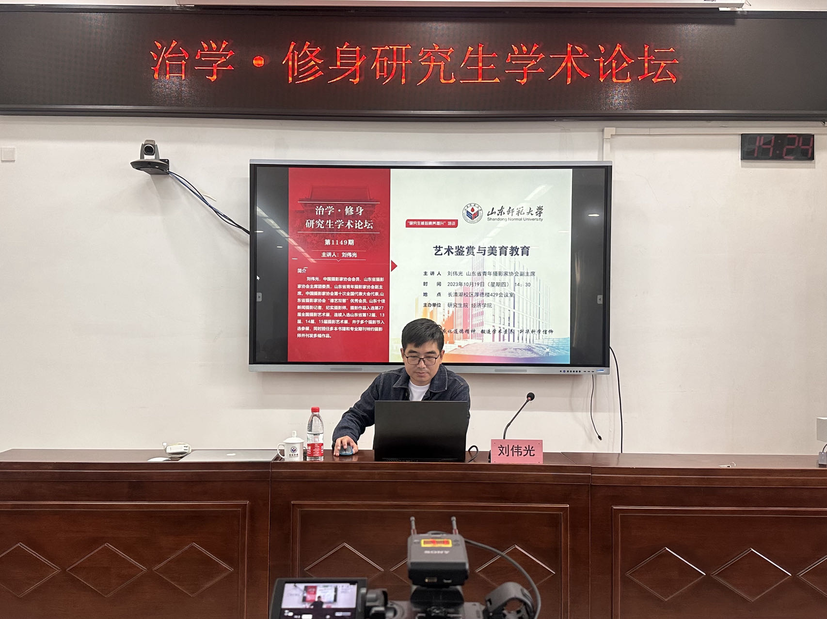 10月19日,英国正版365首页于厚德楼429室举办“治学·修身”研究生学术论坛。此次学术论坛由山东省青年摄影家协会副主席刘伟光担任主讲人,做主题为“艺术鉴赏与美育教育”的报告。会议由英国正版365首页研究生辅导员孙资程主持,英国正版365首页研究生、本科生到场聆听。