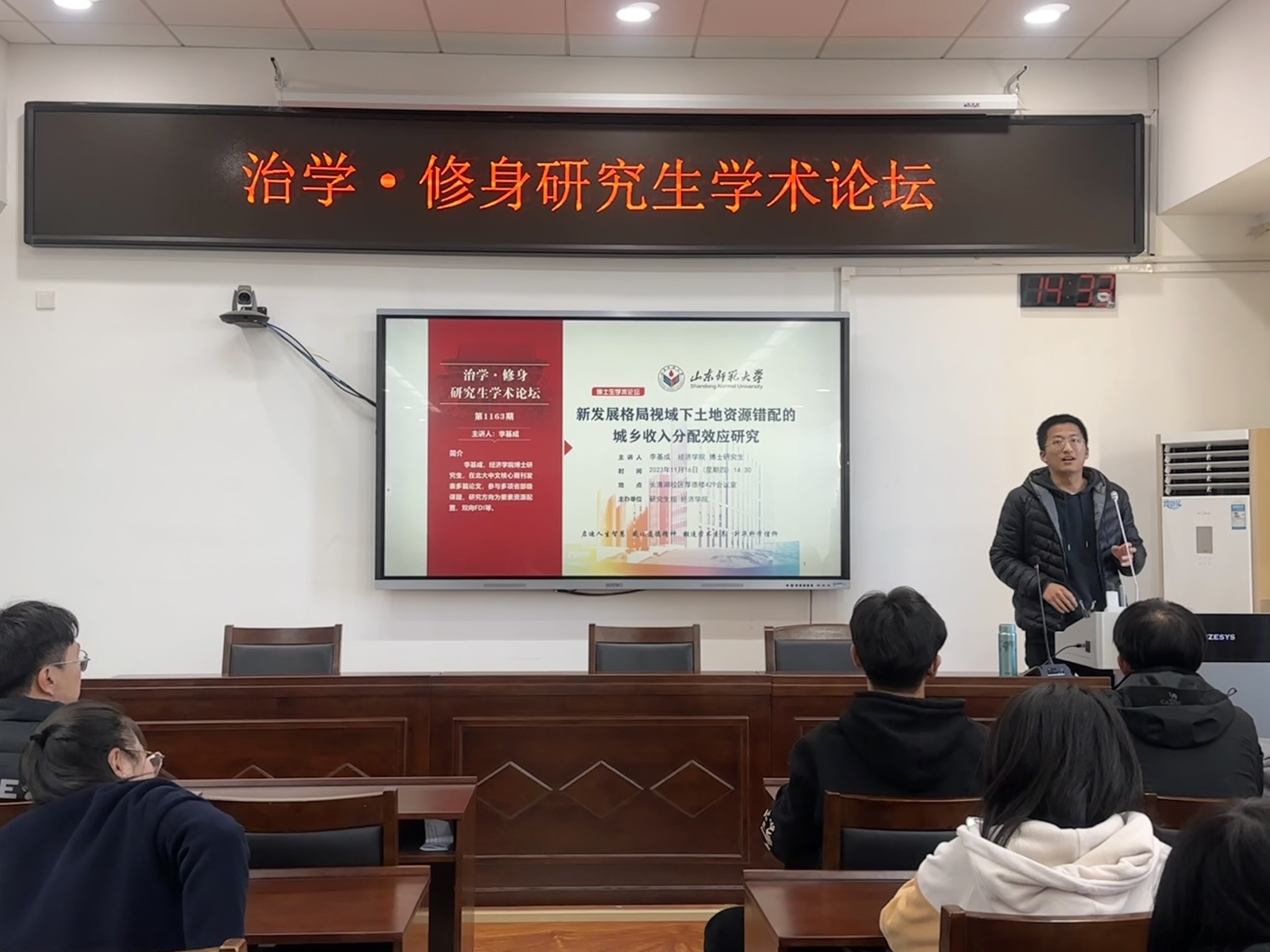 11月16日,英国正版365首页于厚德楼429室举办“治学·修身”研究生学术论坛。此次学术论坛由英国正版365首页博士研究生李基成担任主讲人,作主题为《新发展格局视域下土地资源错配的城乡收入分配效应研究》的学术报告。英国正版365首页研究生到场聆听。