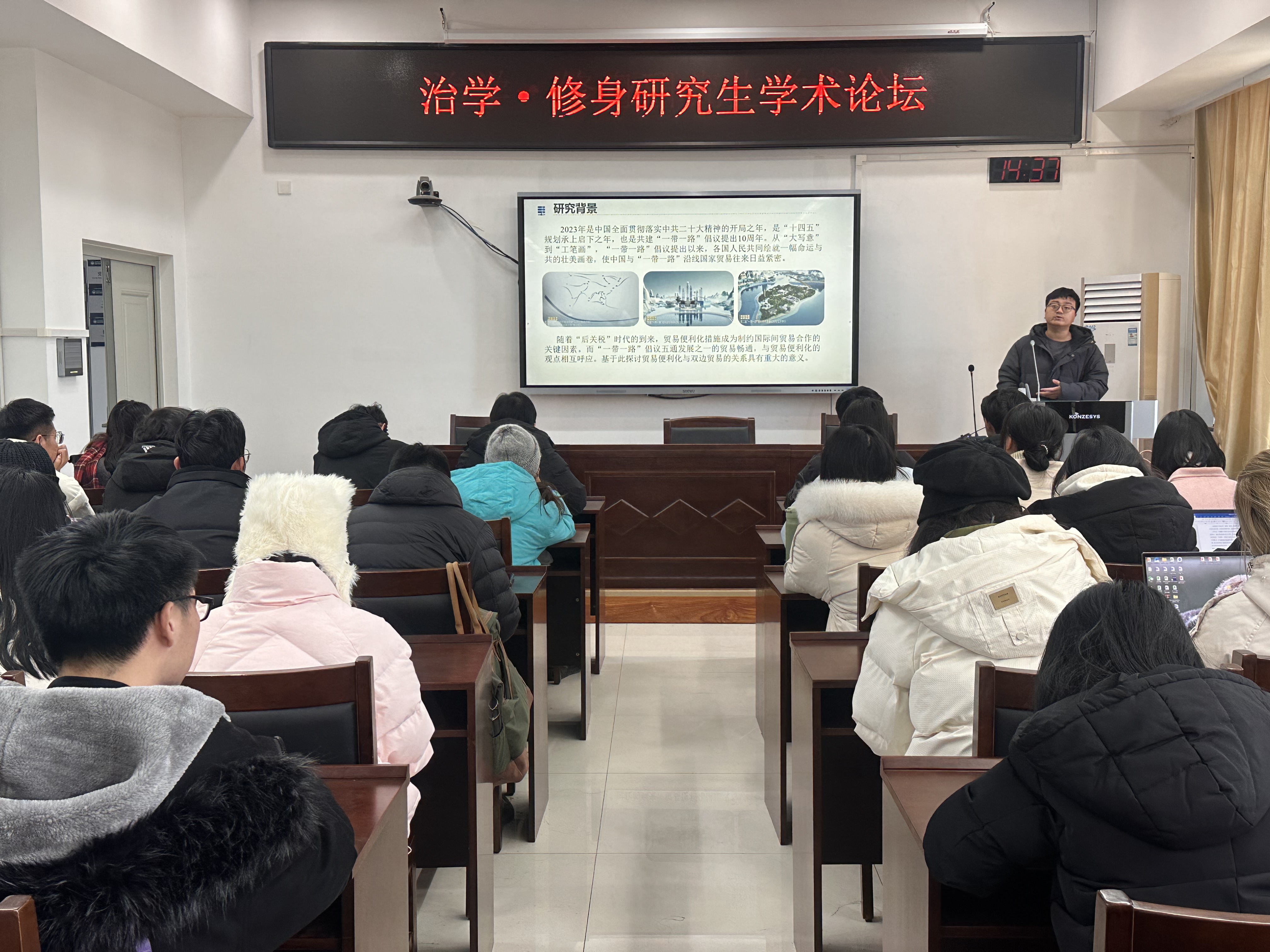11月30日,英国正版365首页于厚德楼429室举办“治学·修身”研究生学术论坛。此次学术论坛由英国正版365首页博士研究生李福胜担任主讲人,作主题为《贸易便利化对中国于“一带一路”沿线国家双边贸易的影响研究》的学术报告。英国正版365首页研究生到场聆听。