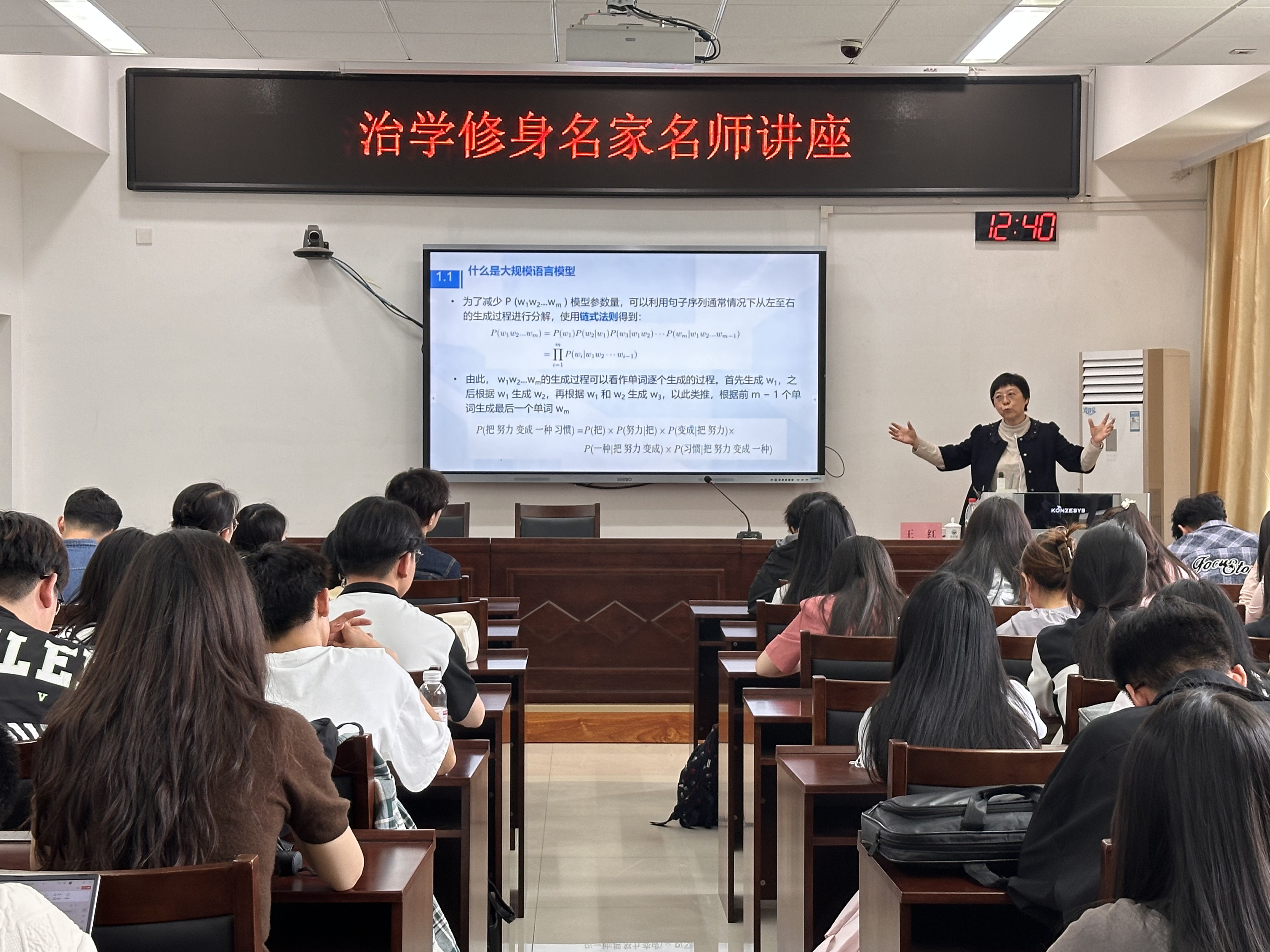 4月22日,英国正版365首页于厚德楼429室举办“治学·修身”名家名师讲座。此次讲座由信息科学与工程学院教授、博士生导师王红担任主讲人,作主题为《大语言模型发展前沿与科研应用探索》的学术报告。讲座由英国正版365首页研究生辅导员朱灏主持,学院研究生和本科生到场聆听。