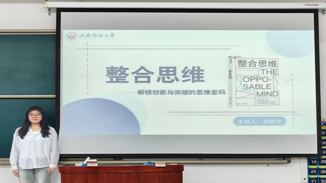主讲人张欣宇分享了《整合思维》一书。她首先介绍了该书作者罗杰·马丁的学术成就和商业贡献。作为多伦多大学罗特曼管理学院前院长,罗杰·马丁开创了“设计思维”这一革命性的管理理念,并凭借其创新的商业理论连续多年入选“全球最具影响力50大商业思想家”榜单。随后,主讲人重点讲解了罗杰·马丁提出的“整合思维”理论。罗杰·马丁认为领导者致胜的关键在于整合思维,即头脑中同时处理两种相互对立的观点,最终形成超越对立、融合双方优势的创新性解决方案。这种高阶思维能力并非少数天才的专利,而是可以通过系统性训练获得的技能。最后,主讲人分享了自己的阅读心得。她强调整合思维早已超越单纯的管理学理论范畴,成为一种应对复杂挑战的关键素养。这种思维模式不仅能为企业战略决策提供新视角,更能帮助每个个体在快速变化的社会环境中保持思维弹性,实现个人成长与职业发展的动态平衡,最终提升我们在各个领域的适应力和竞争力。