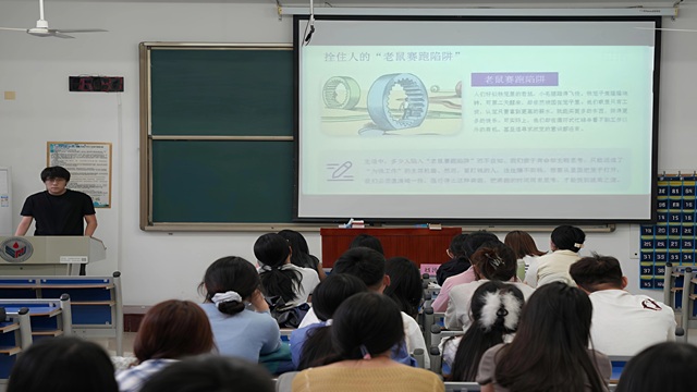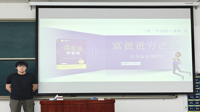 主讲人衣兰江分享了书籍《富爸爸穷爸爸》。他首先对比分析了不同群体在财富认知上的差异:穷人思维往往局限于“以时间换金钱”的单一模式,将全部注意力放在工资收入上,却对身边潜在的商业机会视而不见;而富人思维则突破了这种线性思维的局限,他们深谙“让钱生钱”的奥秘,更注重构建能够产生持续现金流的资产组合,而非单纯追求更高的工资收入。随后,衣兰江同学通过分析校园创业、投资理财等一系列贴近大学生生活的实际案例剖析了财富积累的规律,引导同学们树立正确的财富观和理财意识。他特别强调,真正的财富自由不在于拥有多少金钱,而在于培养让金钱持续增值的思维方式。最后,主讲人分享了自己的阅读感悟:在快速变革的时代,未经思考的盲目努力不仅难以摆脱财务困境,反而可能让人们陷入“越忙越穷”的恶性循环。唯有将认知升级、财商培养与商业实践形成闭环,才能在复杂经济环境中把握财富增长的底层逻辑,实现资产配置的最优化和财富价值的最大化。