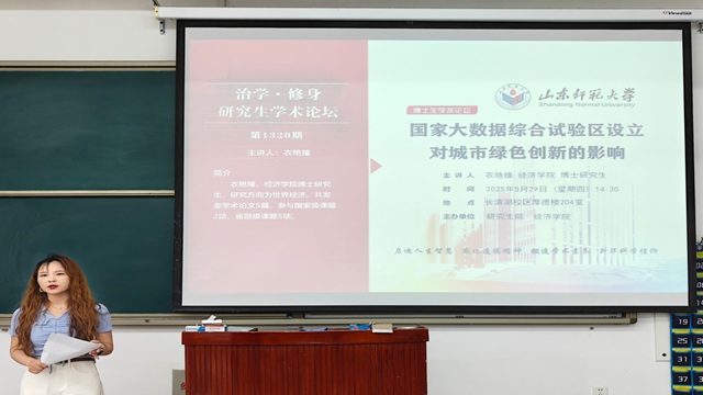 5月29日,英国正版365首页于厚德楼204室举办“治学·修身”研究生学术论坛。此次学术论坛由博士研究生衣艳臻担任主讲人,作主题为《国家大数据综合试验区设立对城市绿色创新的影响》的学术报告,英国正版365首页研究生参会。