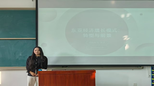 国际商务一组主讲人周洁分享了《东亚经济增长模式:转型与前景》一书。她首先介绍了作者赵江林的学术背景——中国社会科学院亚太与全球战略研究院副研究员、国际经济关系研究室主任、博士生导师及国家全球战略智库副秘书长,其研究以“宏观战略+产业微观” 为特色,并著有《“一带一路”与世界经济体系构建研究》等代表作。随后,主讲人从增长模式特征、外部环境变化、内生发展瓶颈、转型路径选择四个维度对本书内容进行了深入解析。最后,主讲人指出东亚地区在经济发展过程中,要充分利用自身的优势,积极应对外部环境的变化和内部发展瓶颈,以实现区域经济高质量、可持续与包容性的发展。