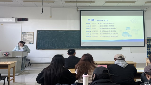 国际商务二组主讲人王存存分享了《历史照进商业:美国创新启示录》一书。她首先介绍了美国的创新发展史,随后提炼出本书的五大战略启示——渐进式国际化、创新保护、文化智力、政治风险识别与可持续发展。接着主讲人从全球化节奏、知识产权布局、跨文化适配、政策博弈及社会责任五个维度展开深入解析,最后指出该书对当前商业实践的启示:决策者应以历史的“长焦距”审视当下挑战,在借鉴美国经验与教训的基础上,更清醒地把握技术演进与制度变迁的规律,从而在全球商业环境中提升前瞻判断与战略布局的能力。